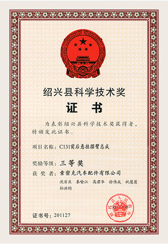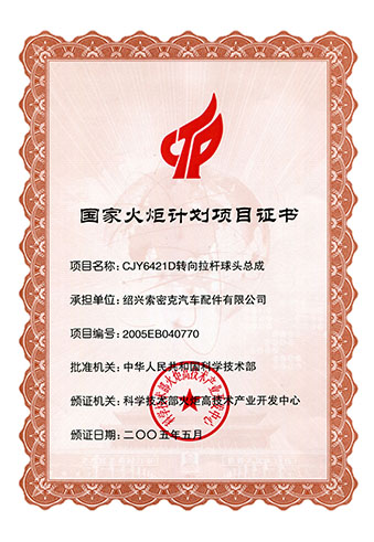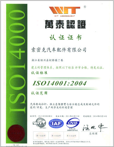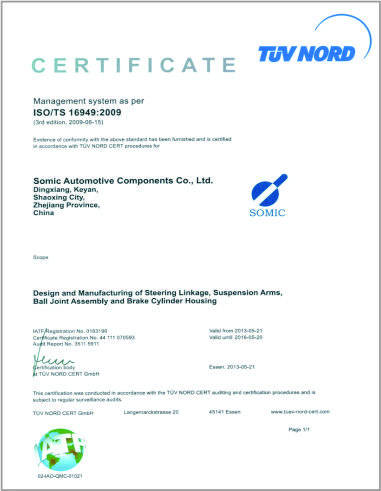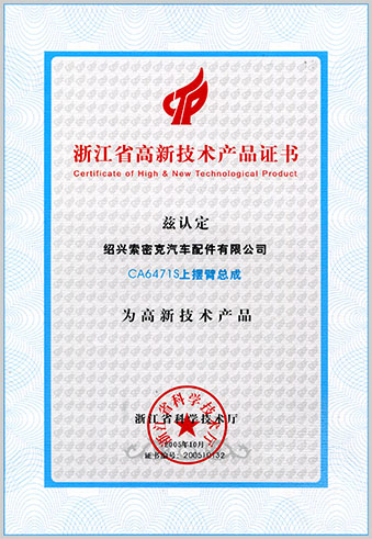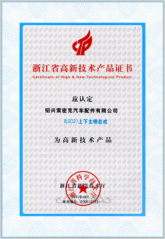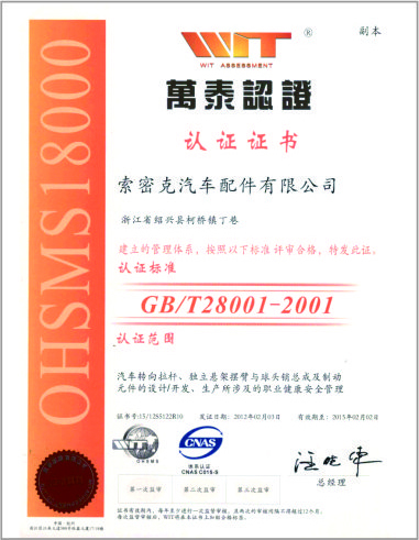 公司已先后通过IATF16949质量管理体系认证、ISO/14001环境管理体系认证和OHSAS18001职业健康安全管理体系认证。是“国家高新技术企业”“行业龙头企业”和“全国百家优秀汽车零部件供应商”。